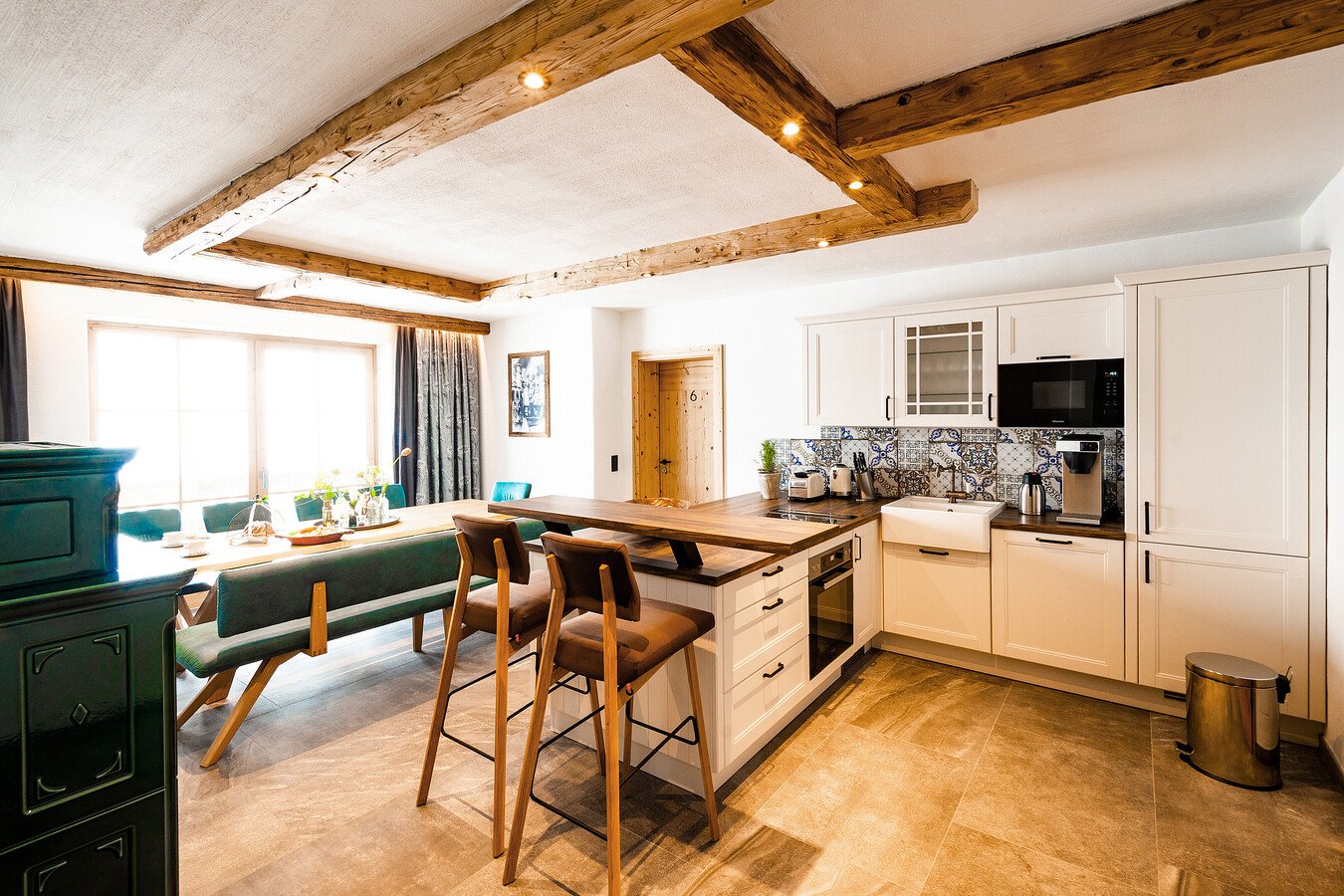 Die geräumige Küche mit großem Wohn- und Essbereich ist perfekt für alle, die gern zusammen kochen, lachen und genießen.