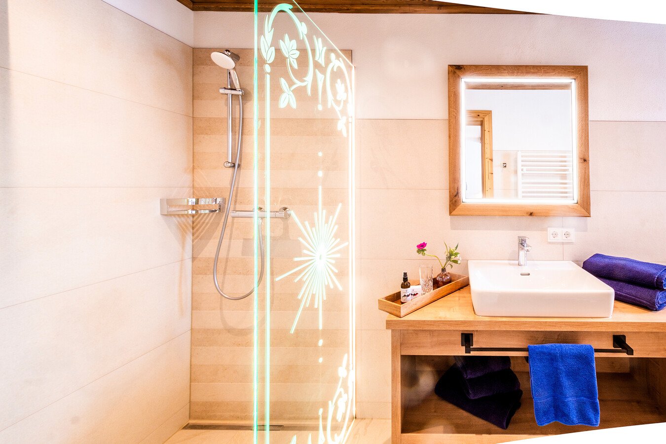 Unsere Apartments im Ferienhaus sind wie die Umgebung: echt, ruhig und ein kleines bisschen märchenhaft. Hier schläfst du mit dem Rauschen des Waldes ein und wachst auf mit dem Blick auf Wiesen, Wälder und Berge.