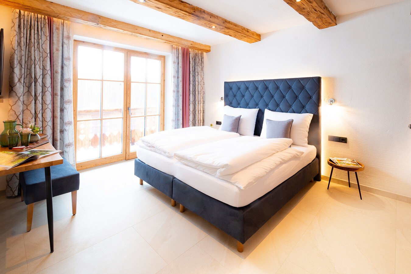 Auf großzügigen 24 m² erwartet euch ein komfortables Doppelbett, dazu ein modernes Bad mit Dusche und WC. Das Highlight: Euer eigener Balkon für entspannte Stunden und frische Bergluft.